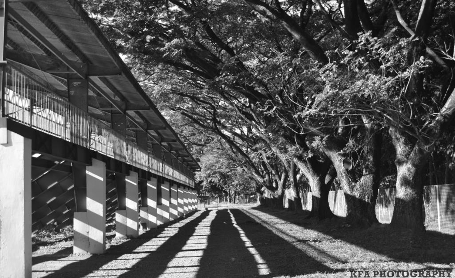 I shoot this behind the bleacher, it is around 8:00 AM. Surprisingly, the shadows cast like that. Then my eyes amazed saying on my mind "its the hidden beauty of this bleachers". So, I was pushed to shoot to it.